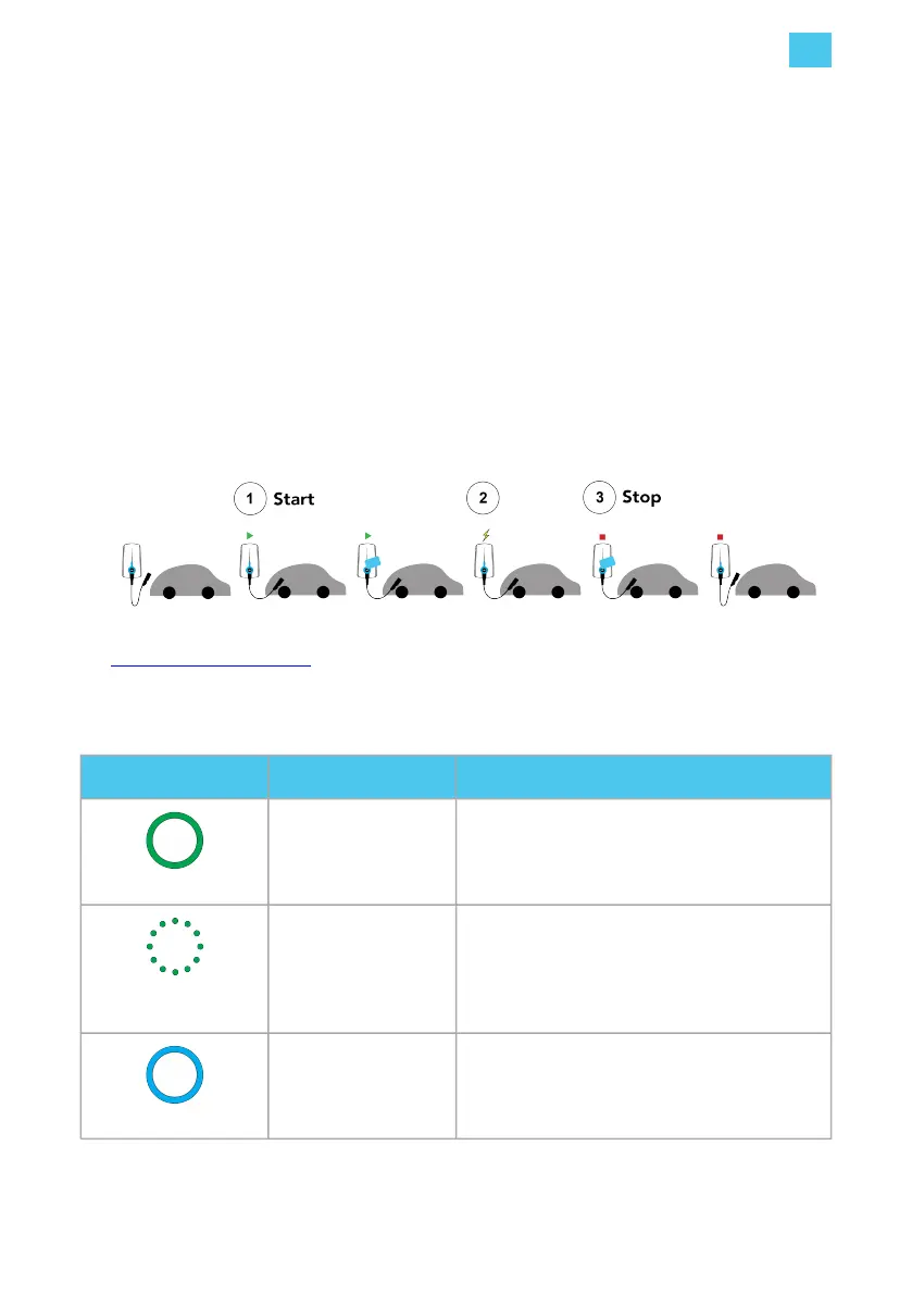 • If you use a charge card or key fob, hold it in front of the reader on the charging station to