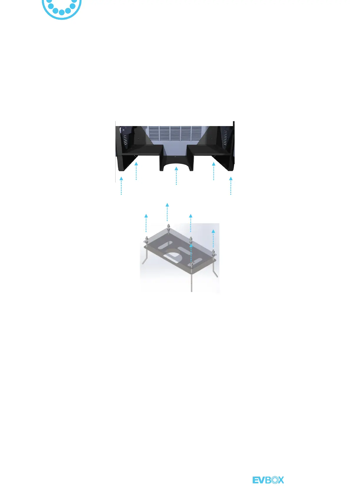 - Remove the M12 nuts from the upper metal sheet and Install the charger over the 5 threaded