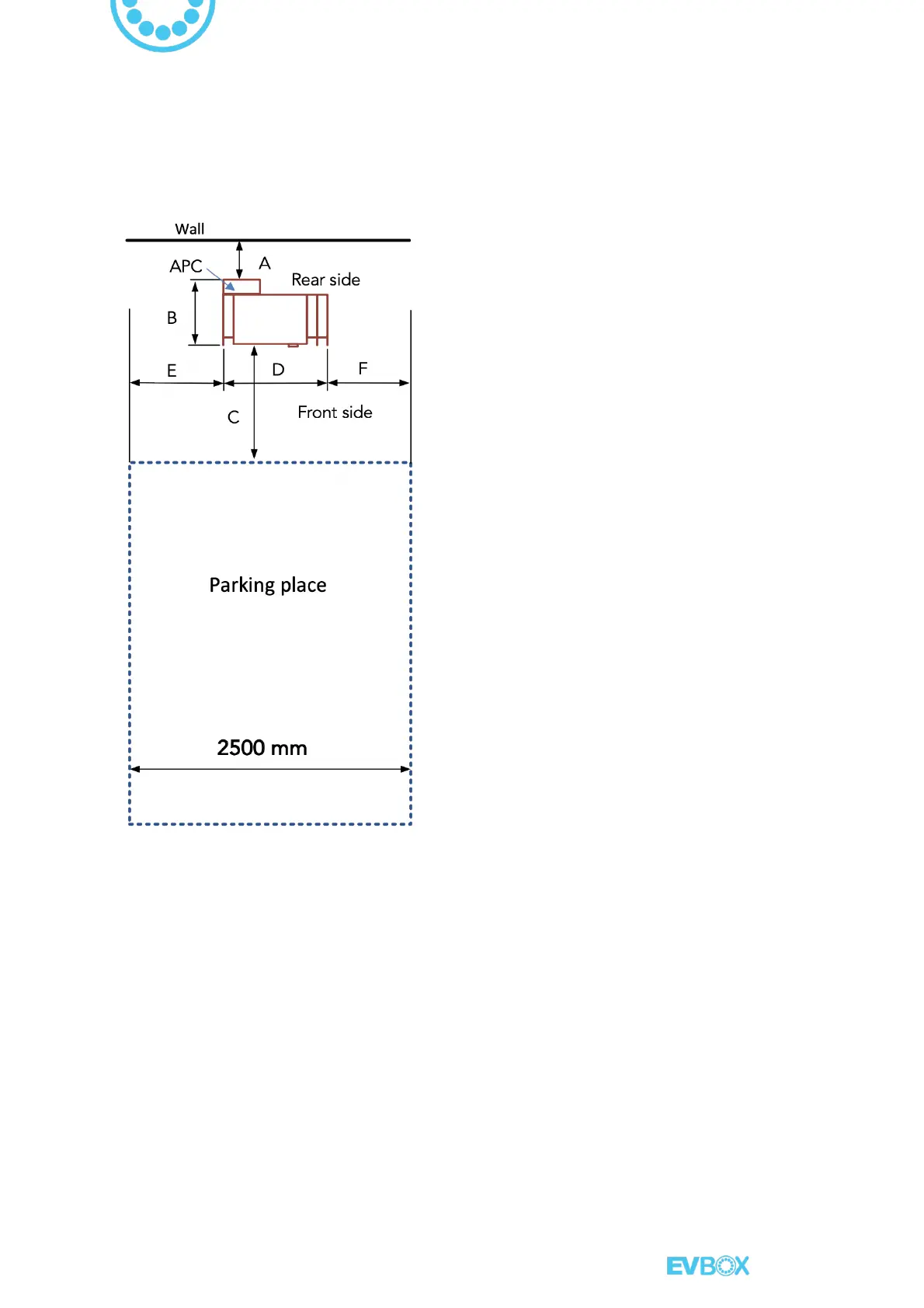 the charger in relation to a parking space of 2500 mm width: