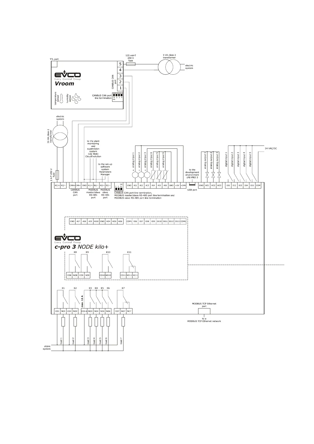 Evco c-pro 3 NODE kilo+ - Example of Electric Connection