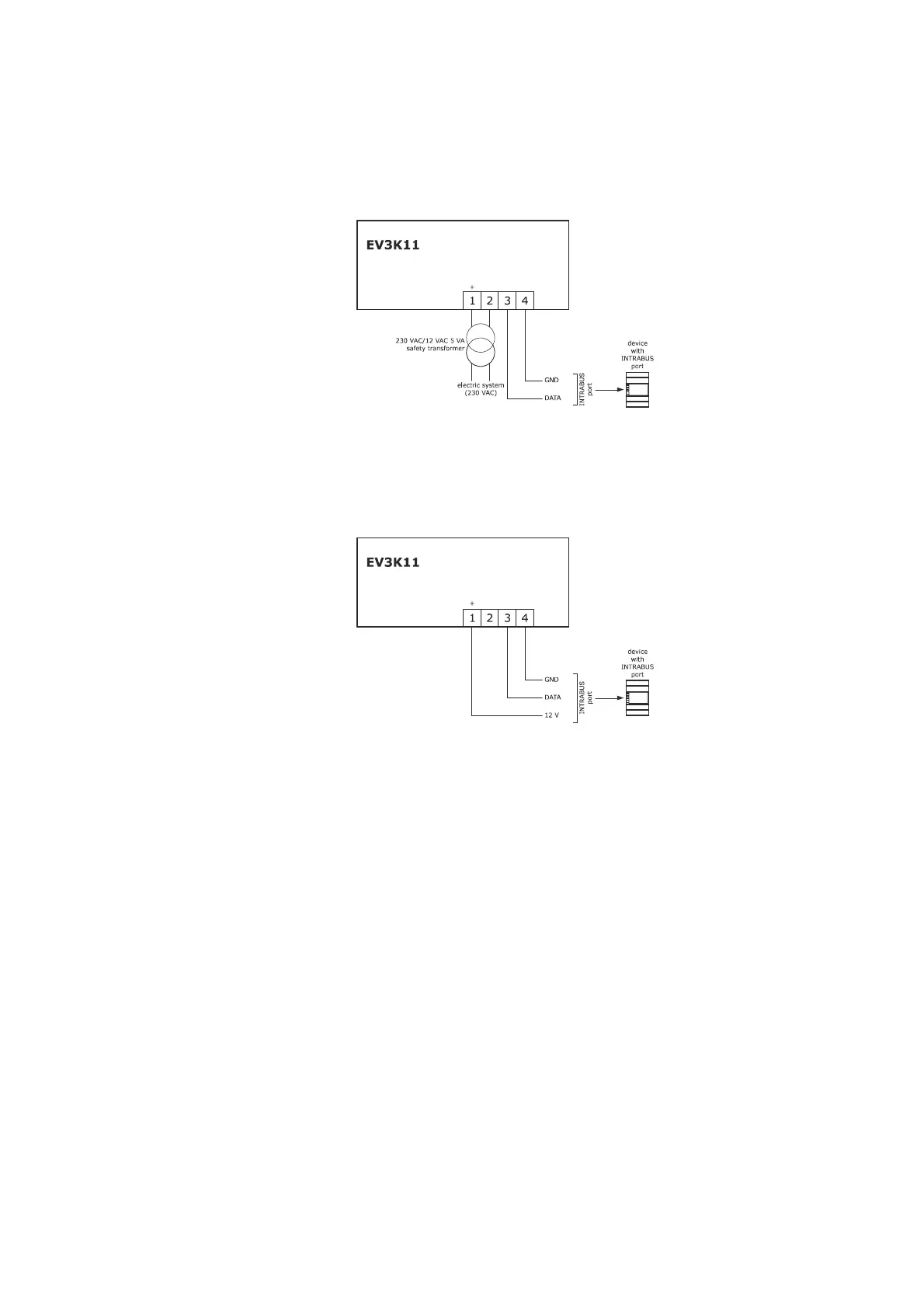 Example 1 of electrical connection: EV3K11 is powered by a safety transformer.