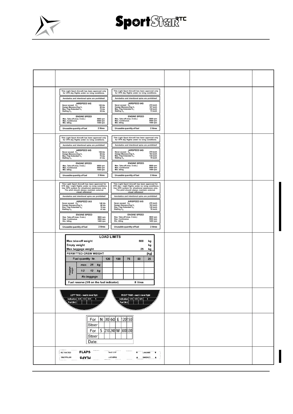 1. LIST OF INTERIOR PLACARDS AND MARKINGS