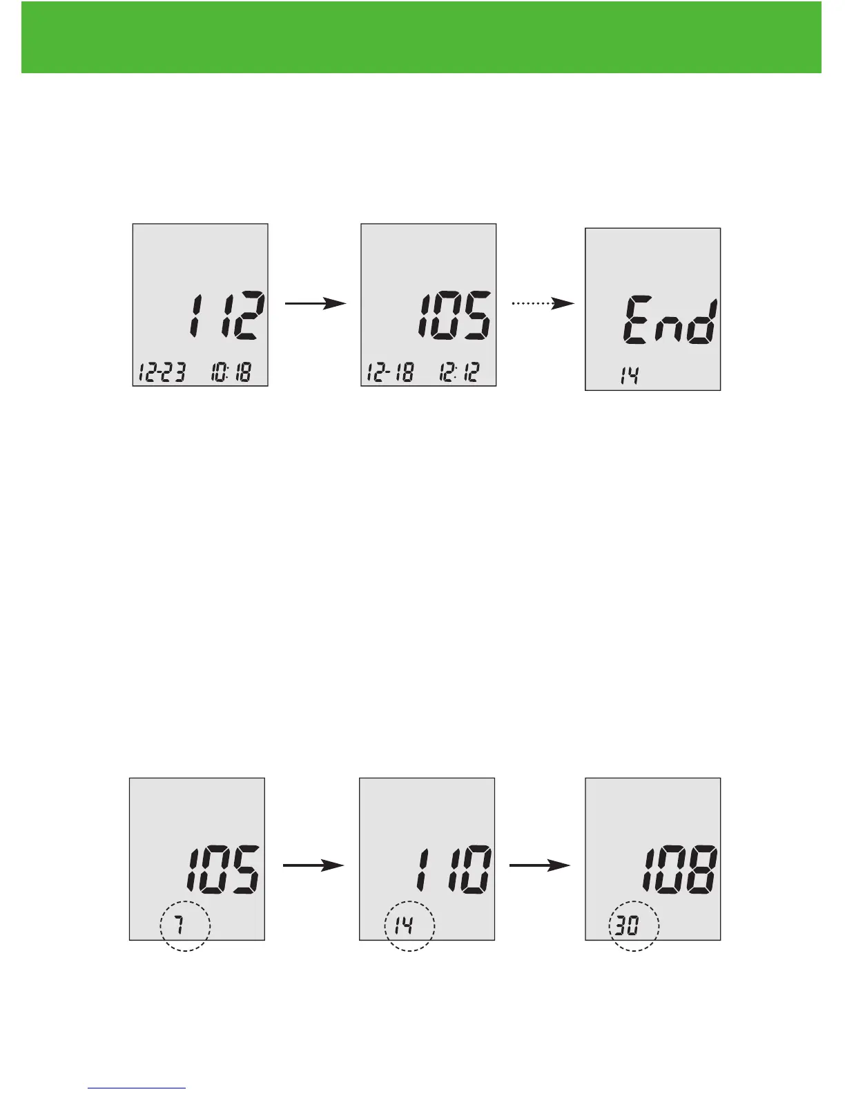 press ▼ again to see 14 day’s average, and press ▼ again to see 30