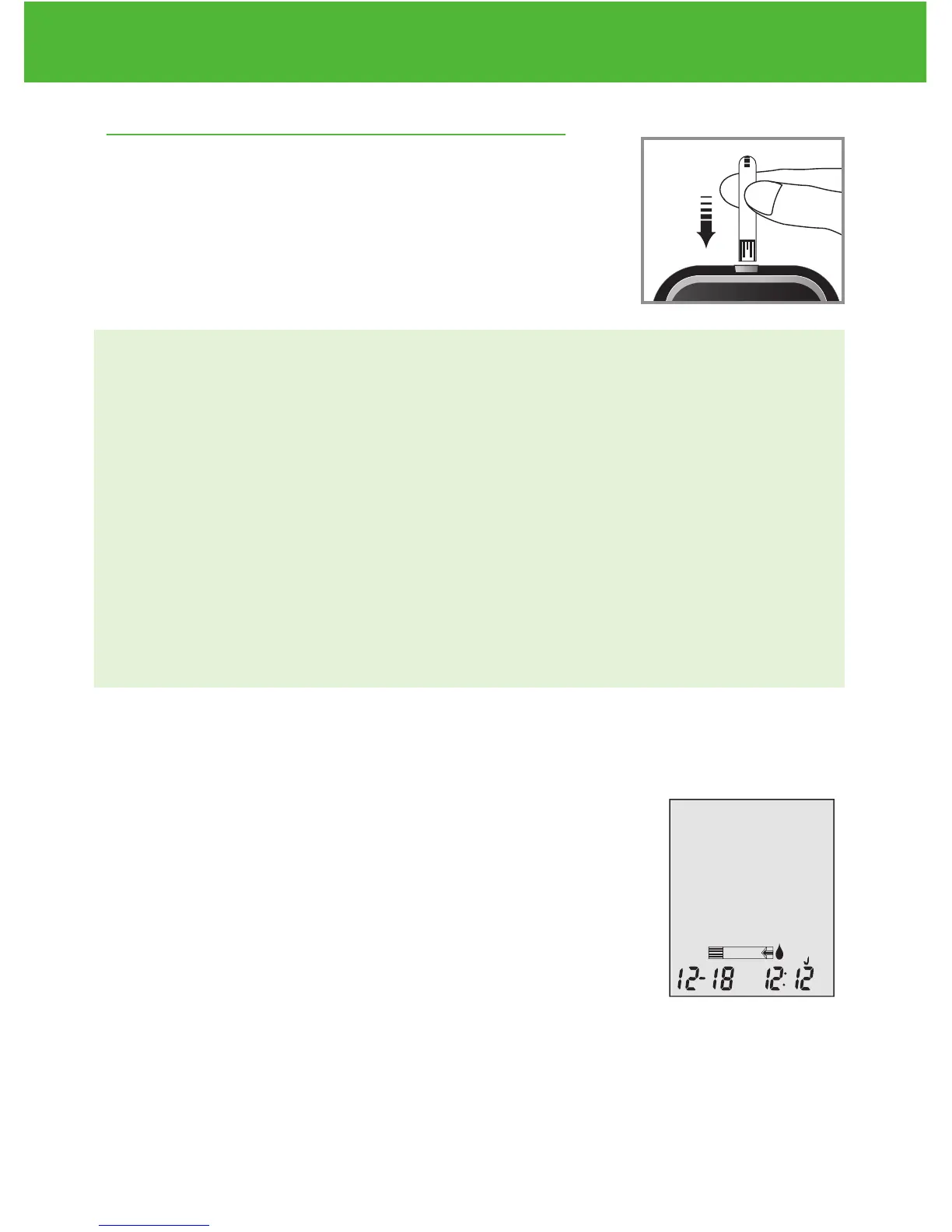• Debe ver un icono de gota de sangre intermitente si la tira reactiva