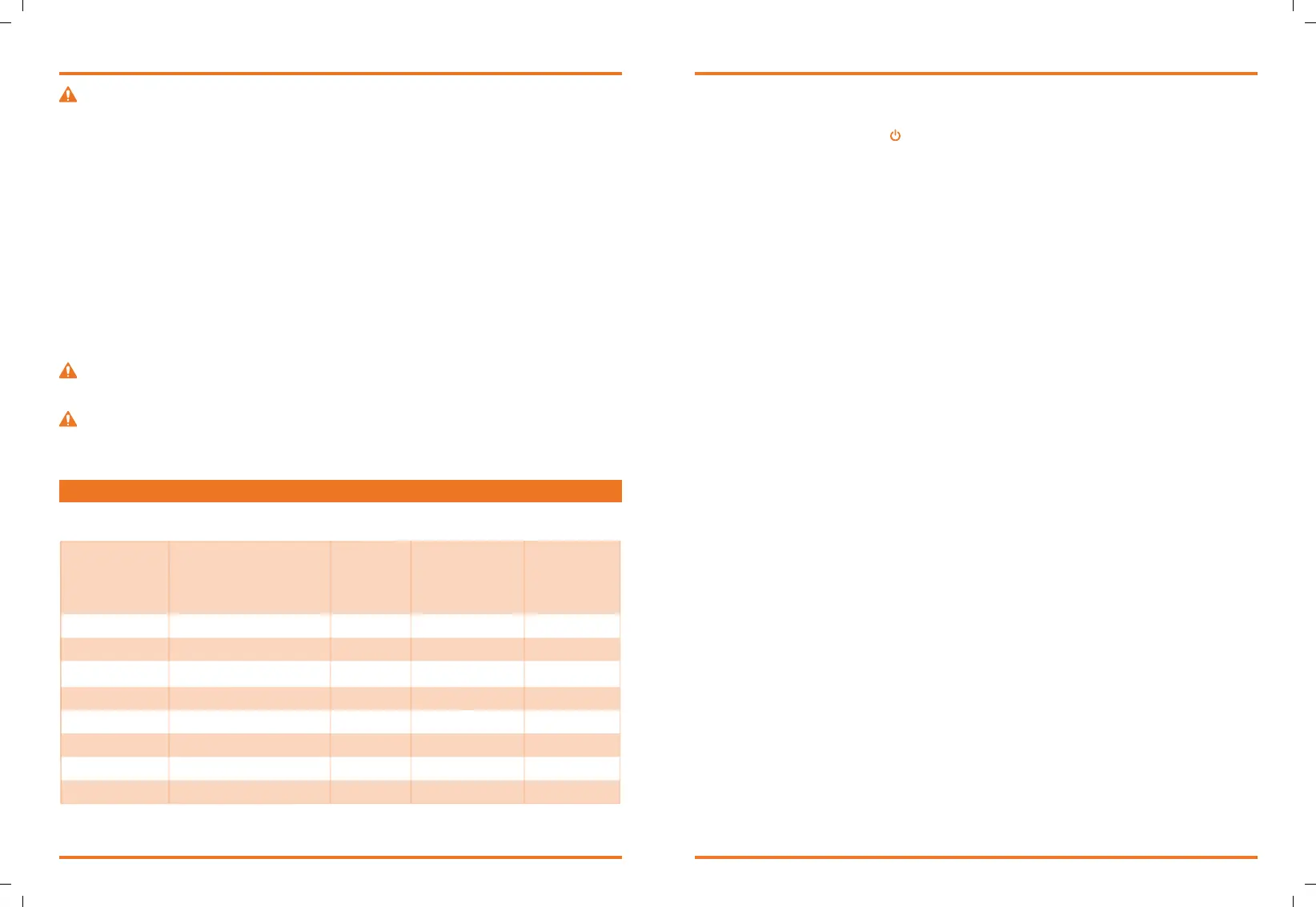 mentioned in the reference table to prevent overheating or inefficiency in the product.