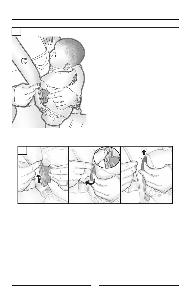 Gire el asa de la hebilla A alejada del bebé en un movimiento hacia arriba