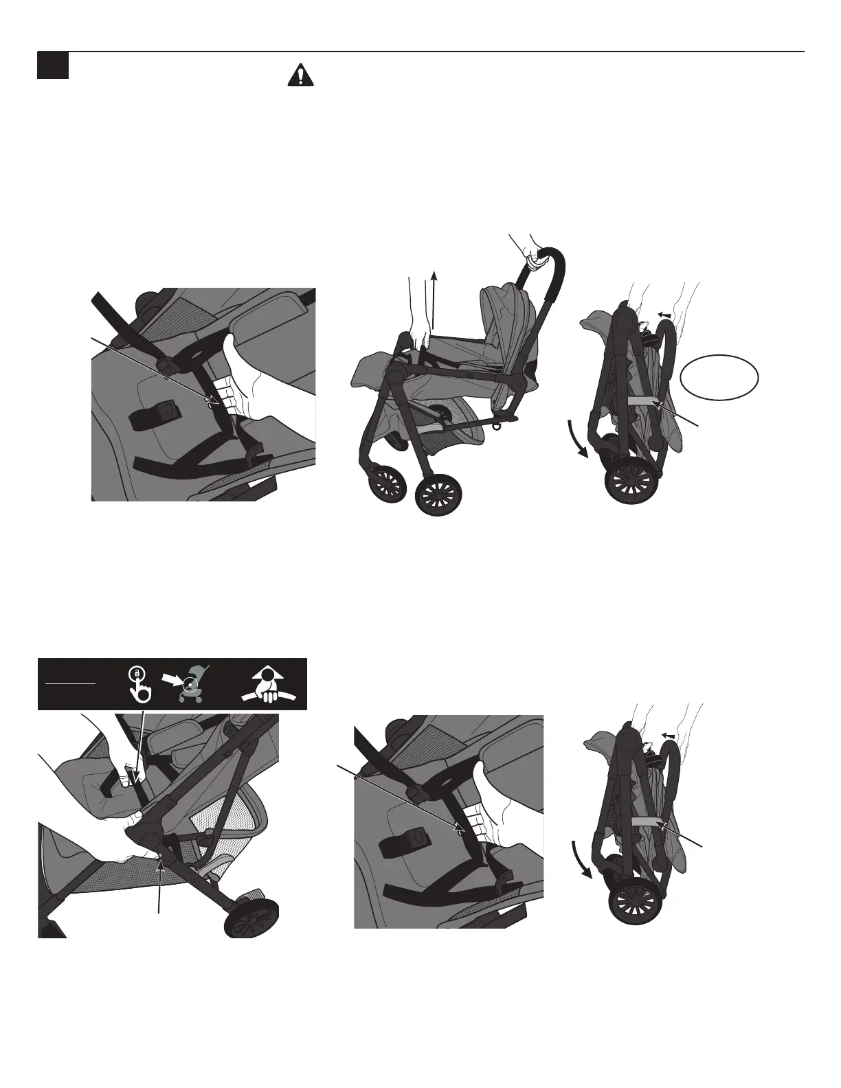 chasquido. Después de jalar la correa de plegado en el asiento, es posible que necesite empujar hasta juntar la carriola para