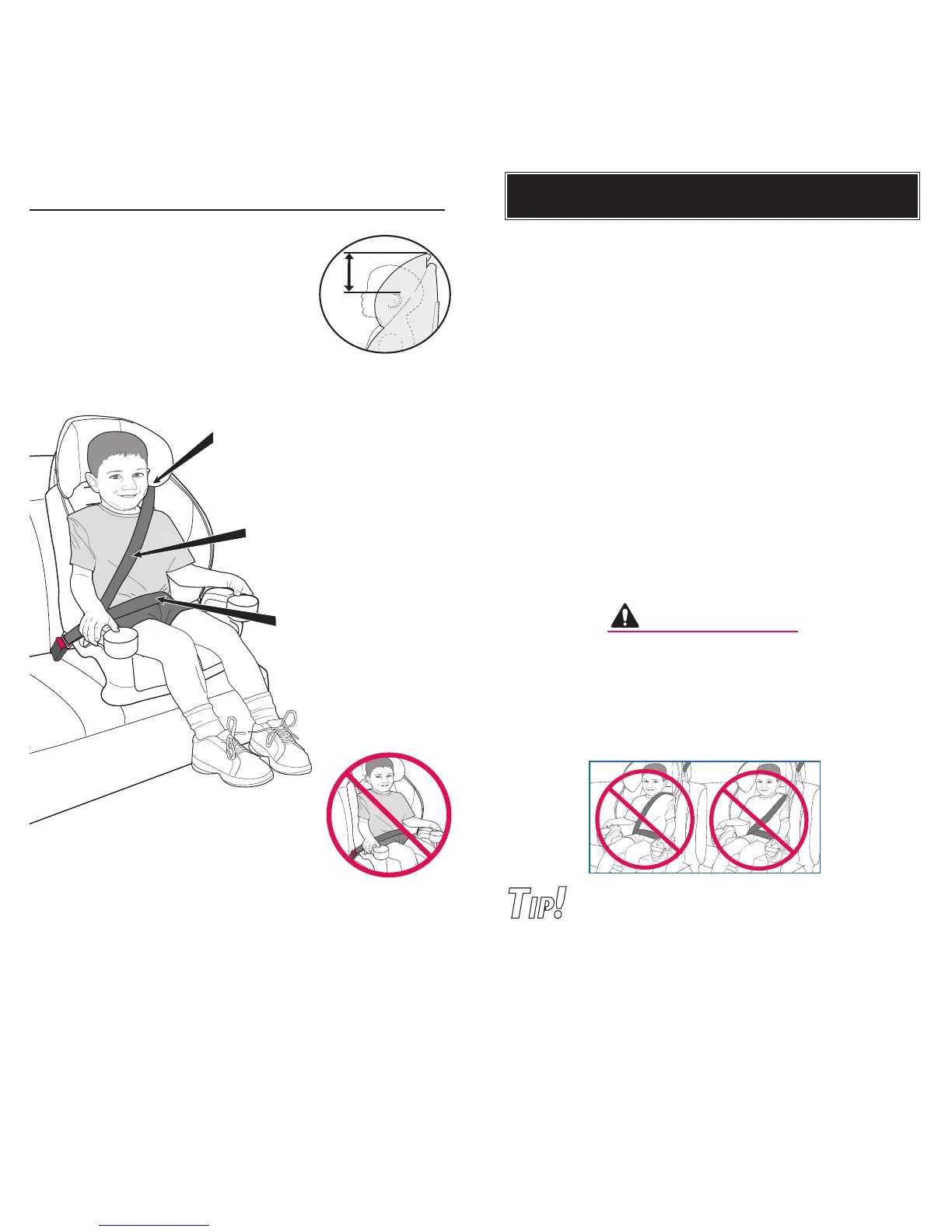 belt to properly lay midway between the child’s shoulder