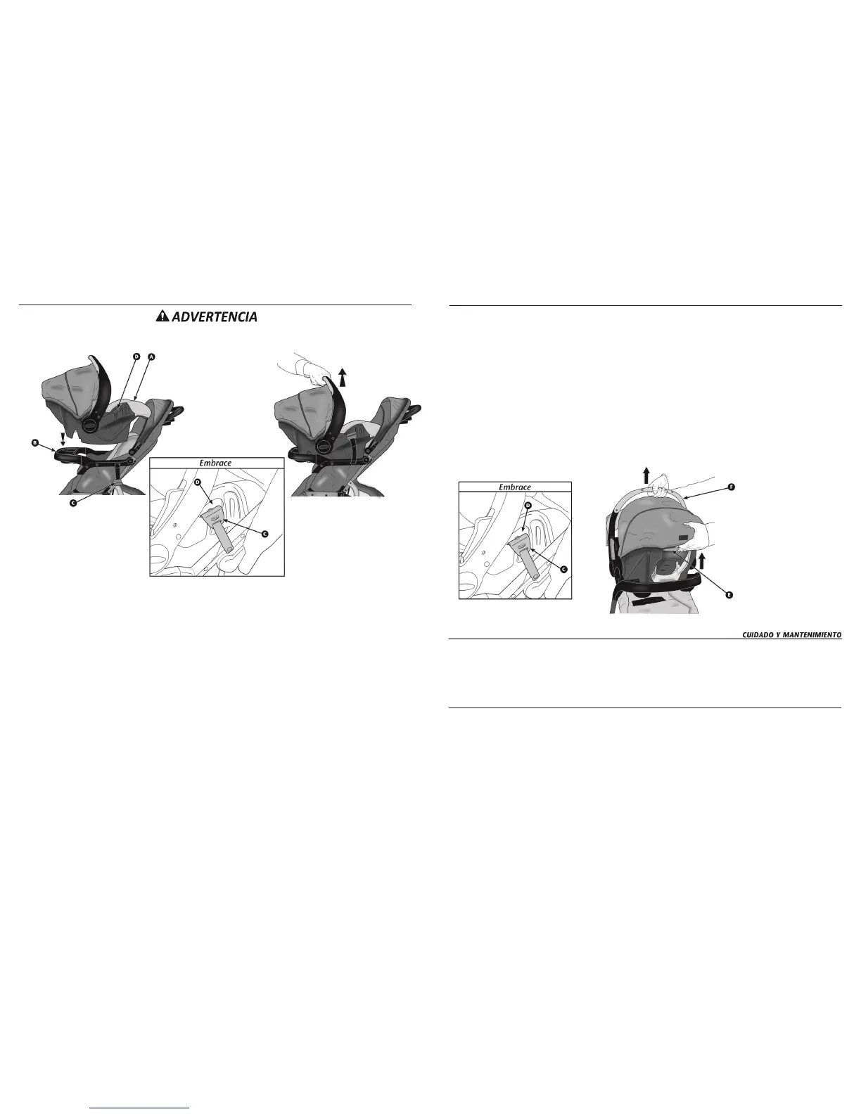 • Para evitar lesiones graves al niño cuando el asiento de bebé para el automóvil Embrace está en la carriola, asegúrese