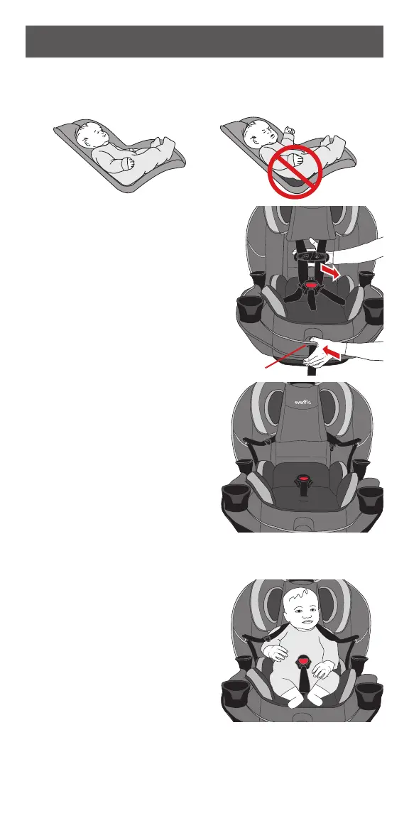 Place baby in the child restraint. The baby’s back and