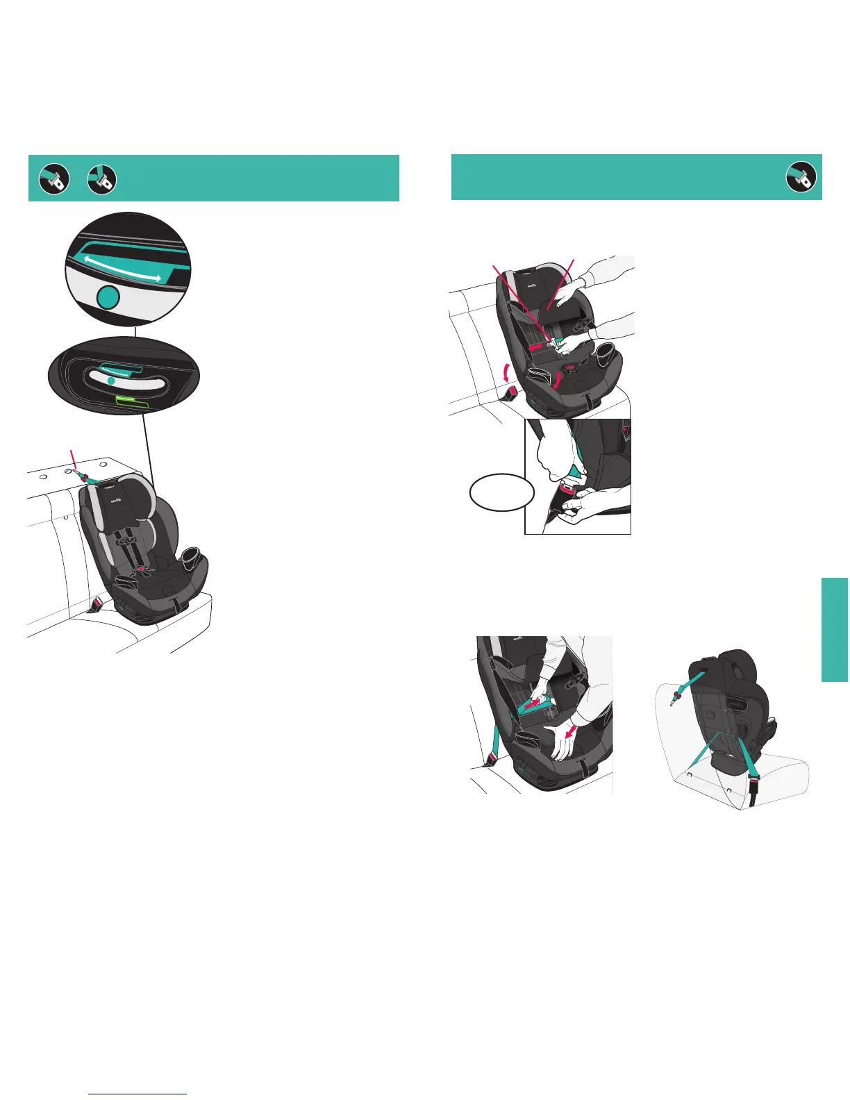 Using your full weight, push the child restraint firmly