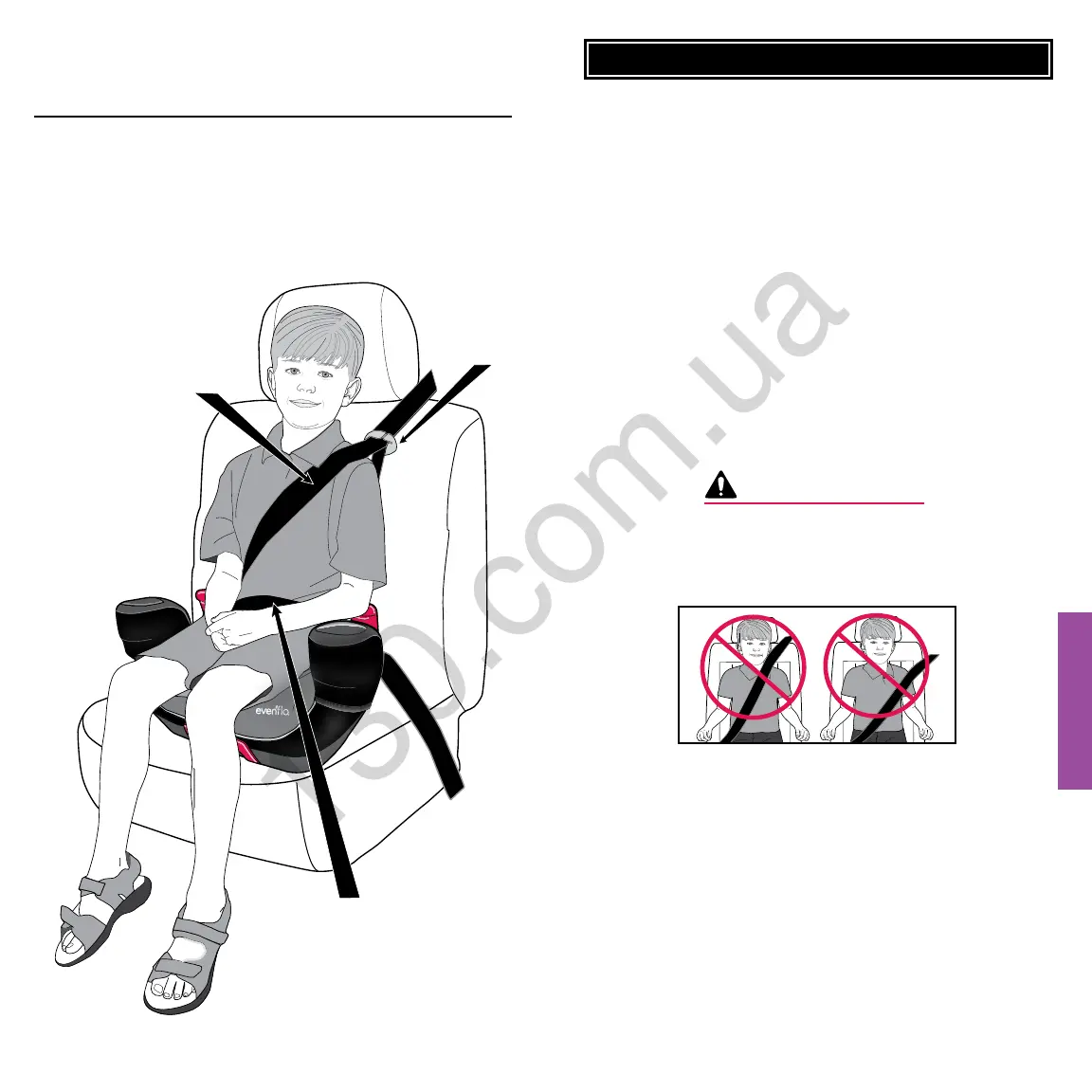 the child’s shoulder. If you cannot adjust the shoulder belt to