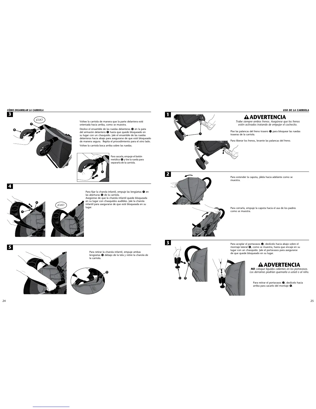 en su lugar con chasquidos audibles. Jale la charola