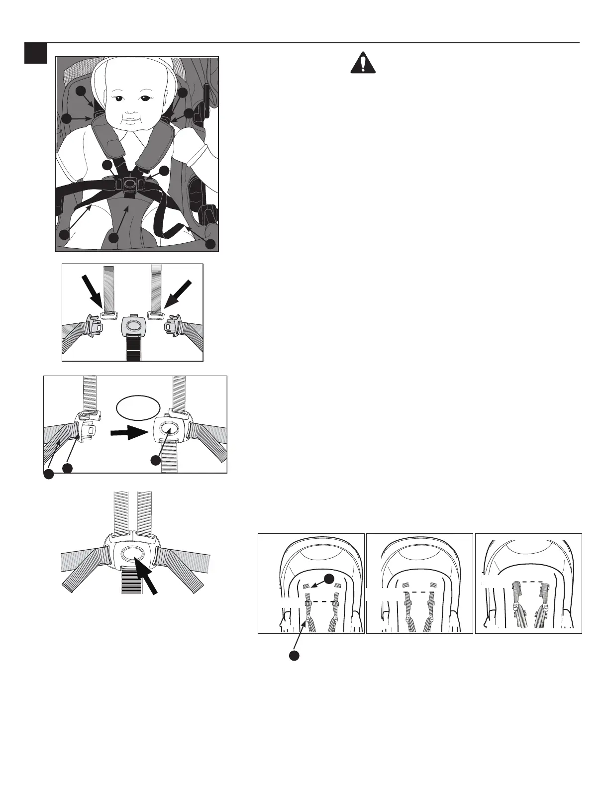 the child’s legs. Fasten each buckle