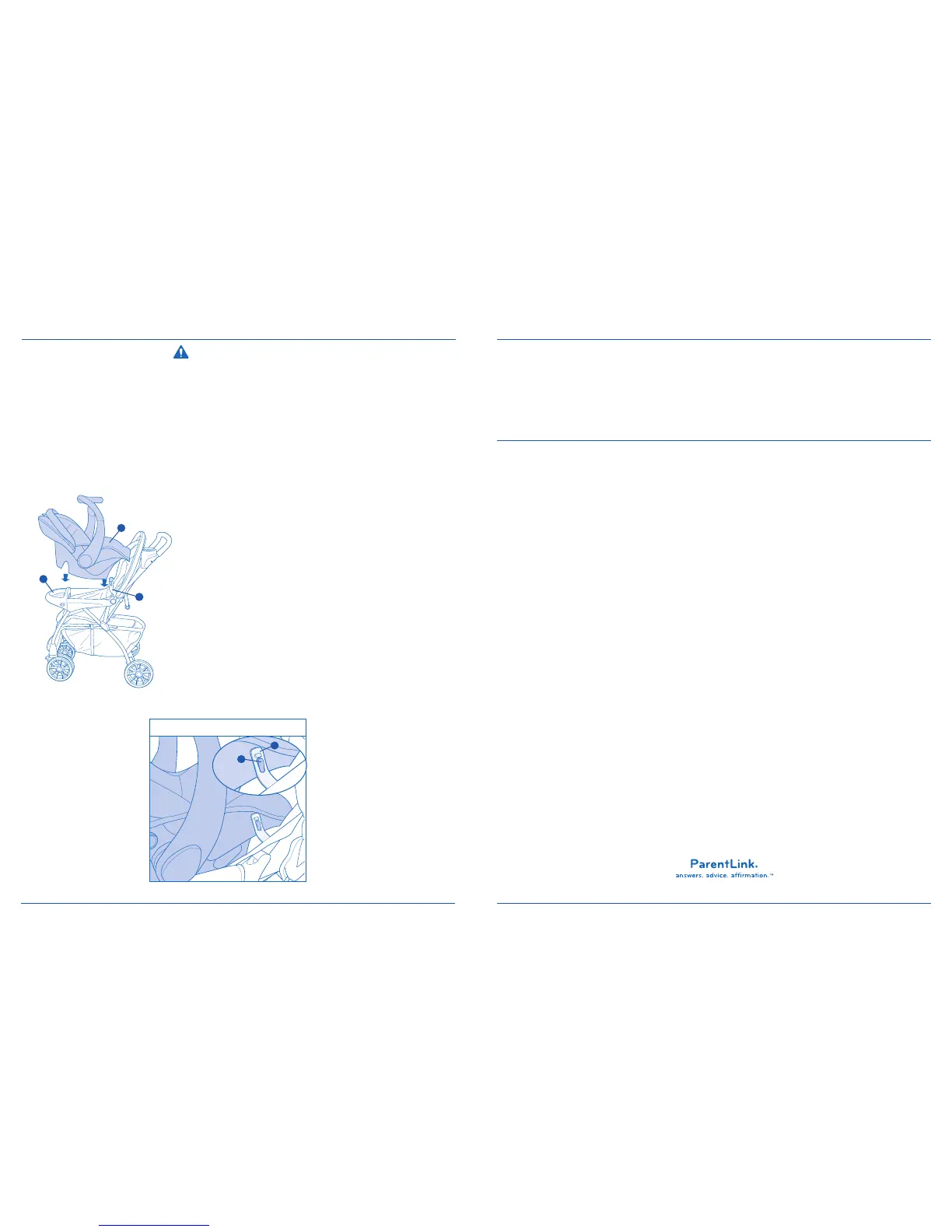 • Sólo utilice los asiento de bebé para el automóvil Embrace de Evenflo con la carriola. Otros asientos de bebé para el
