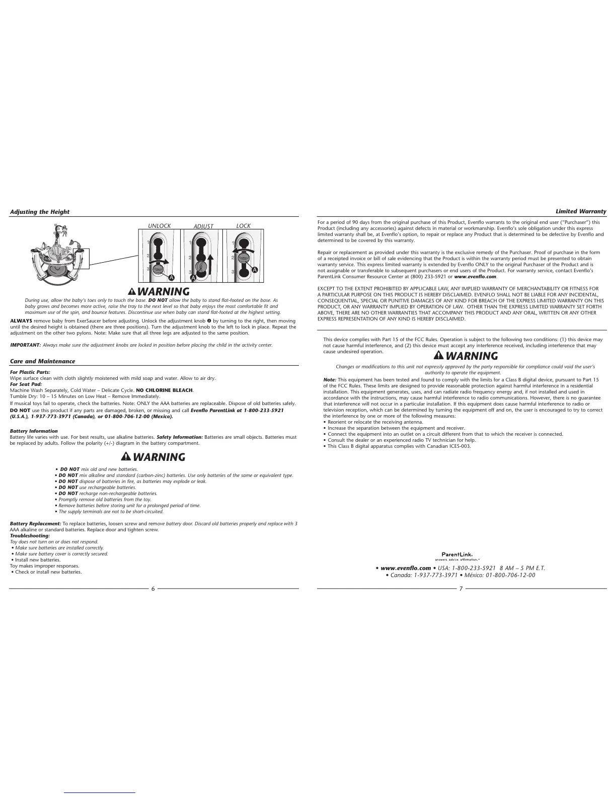 • www.evenflo.com • USA: 1-800-233-5921 8 AM – 5 PM E.T.