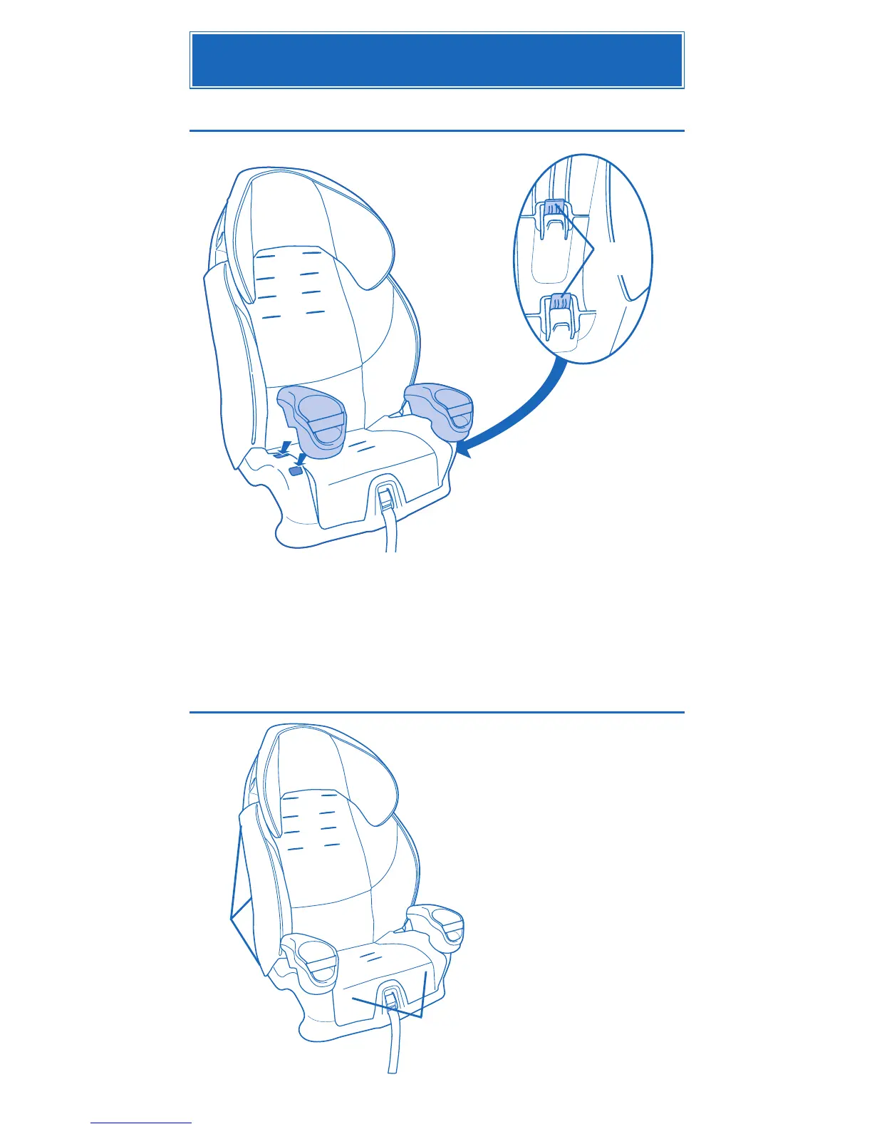 Snap each cup holder onto the seat, as shown, until you