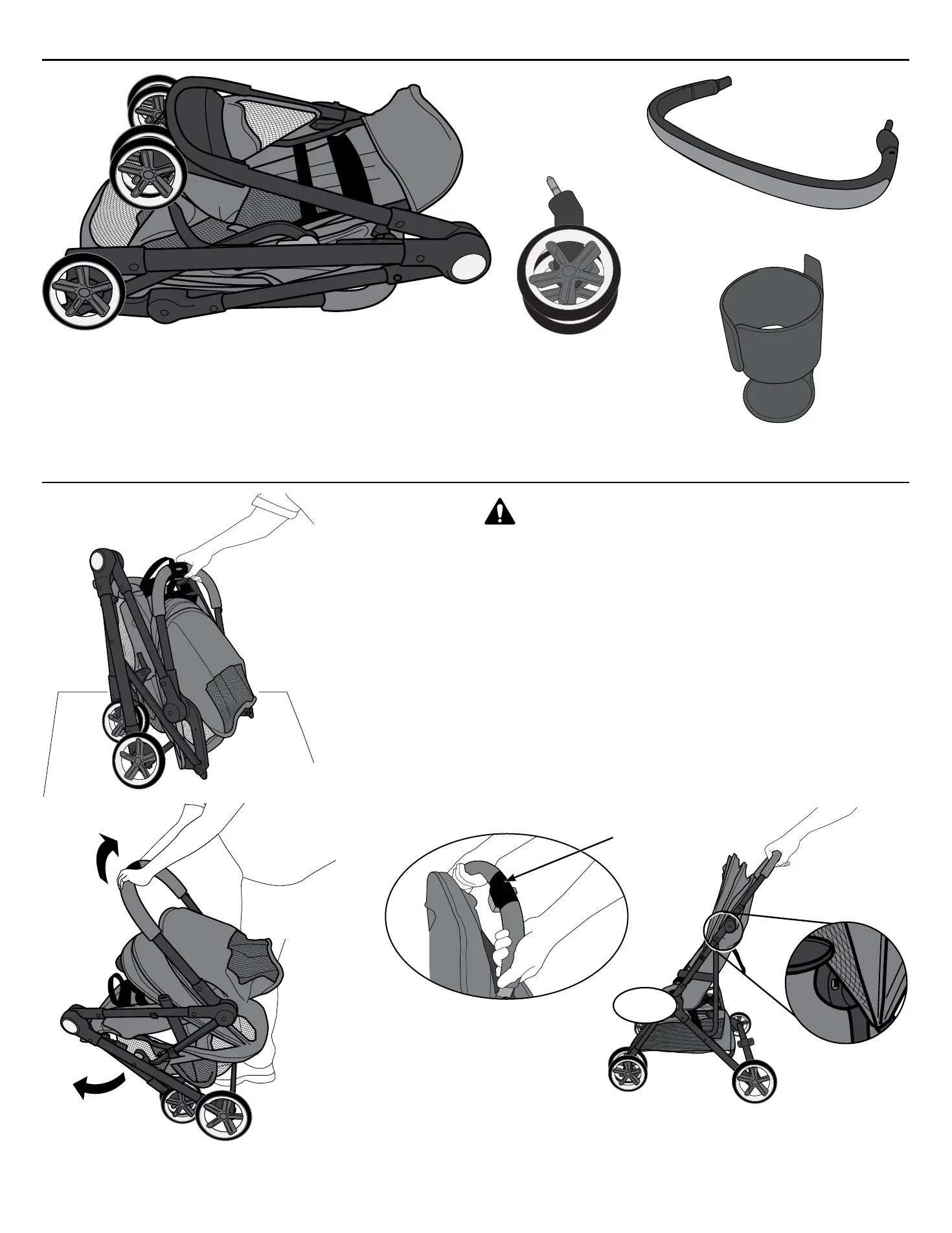 with palms facing up. Lift up until stroller opens fully with an audible click.