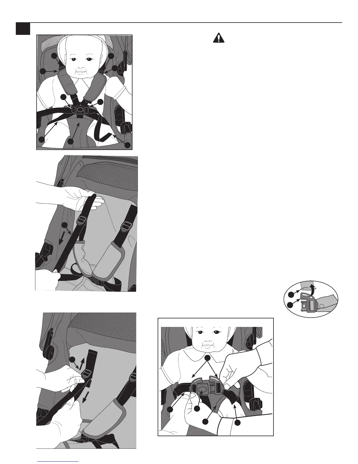 the child’s legs. Fasten each buckle