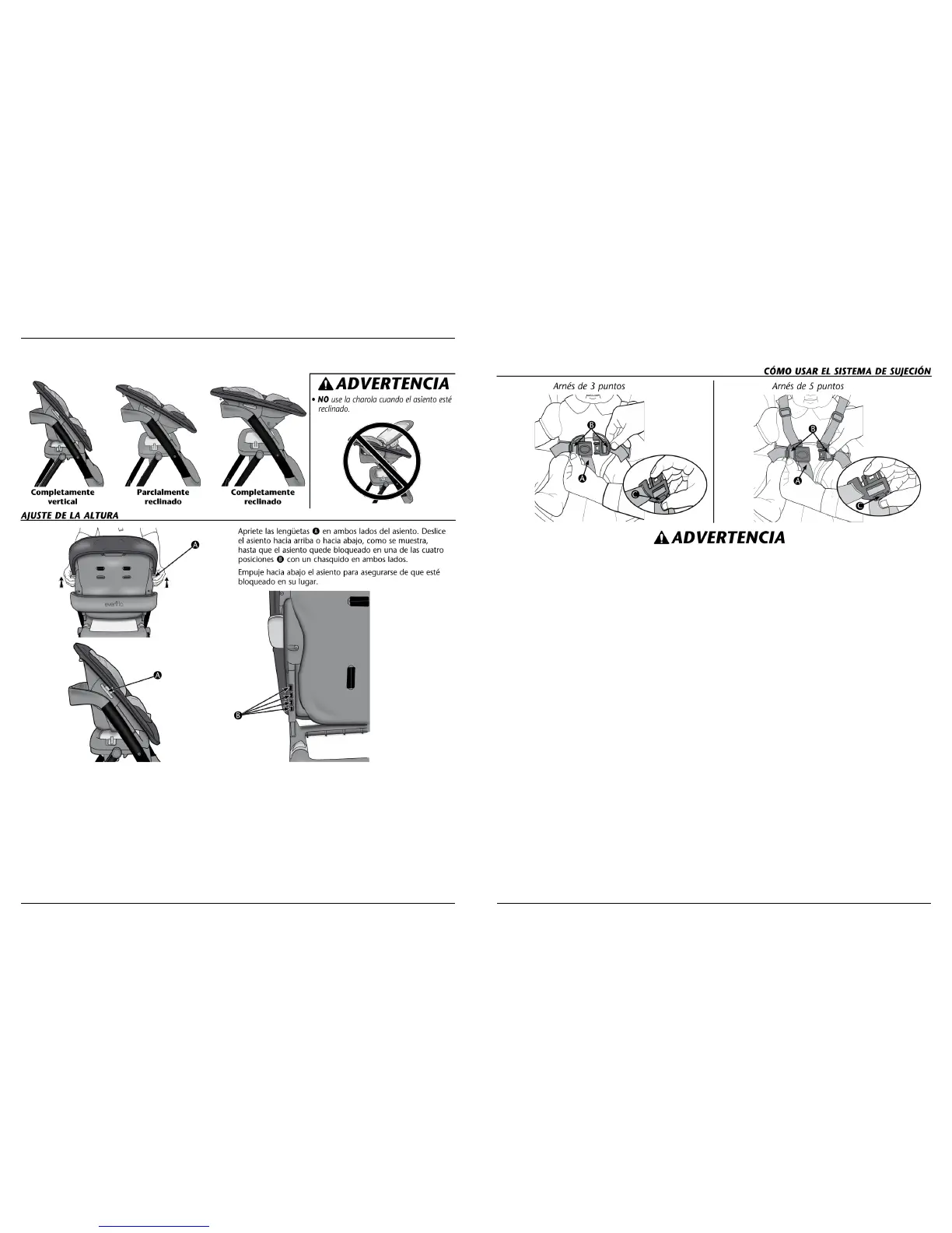 • El niño DEBE estar bien sujeto en todo momento en la silla alta con el sistema de sujeción.