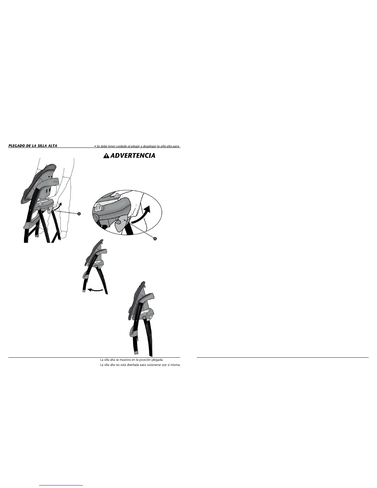 Se debe tener cuidado al plegar y desplegar la silla alta para