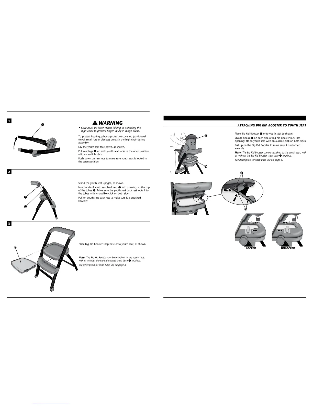Evenflo Quatore - Reclining Infant Seat Use; Attaching Big Kid Booster to Youth Seat