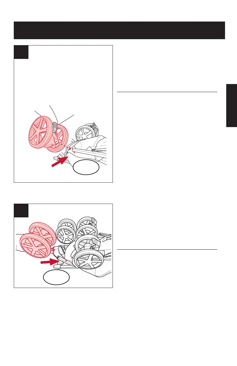 To attach front wheels, push wheel