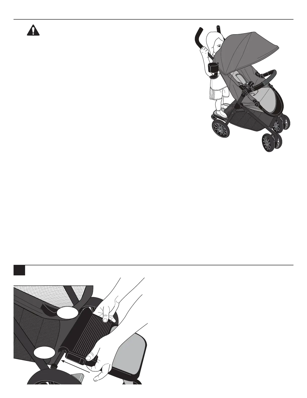 • TO AVOID FALLS, child must hold onto stroller at all times when
