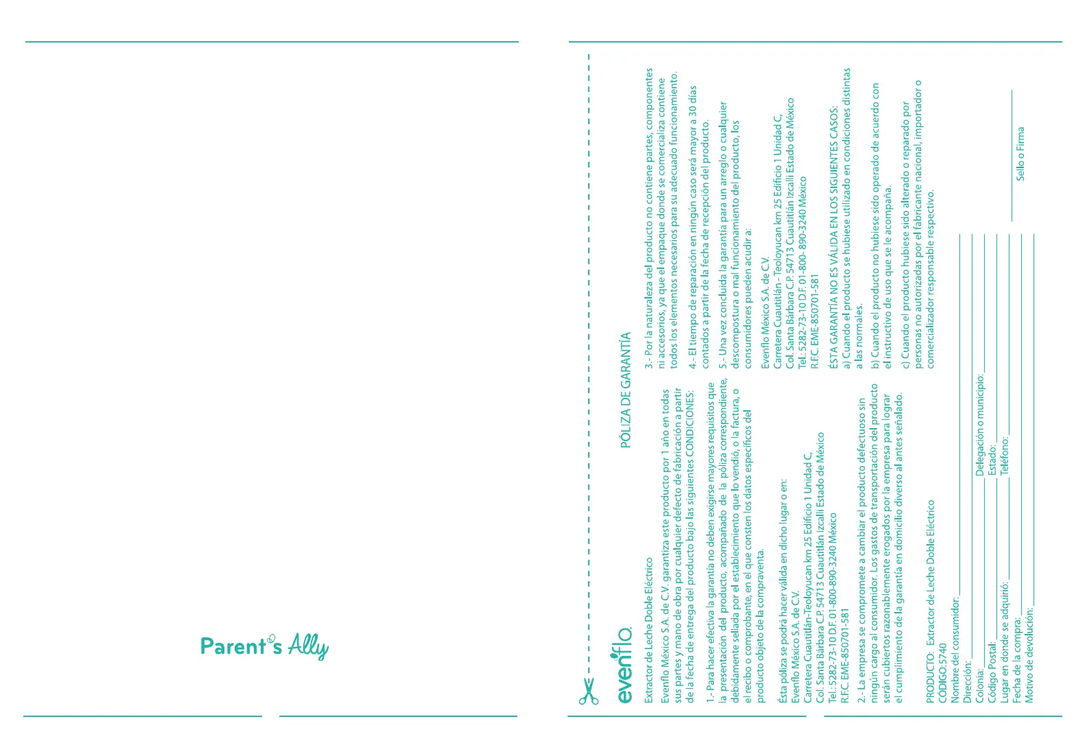 donde conste que el Producto está dentro del periodo de garantía. Evenflo