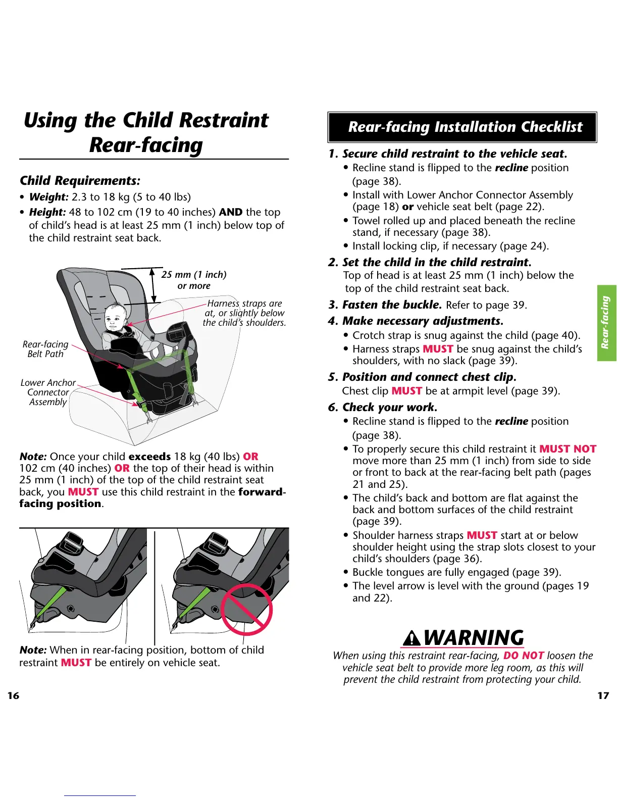 Note: Once your child exceeds 18 kg (40 lbs) OR