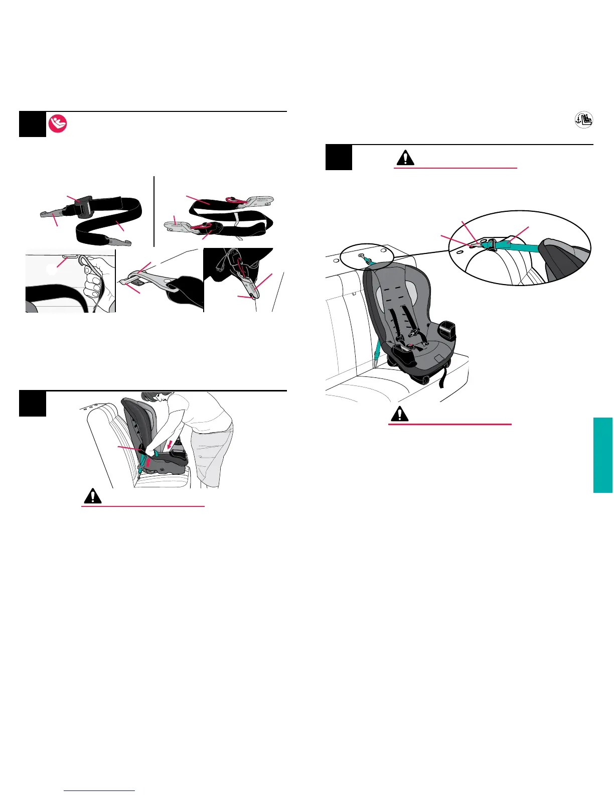 • The tether strap is for forward-facing use only.