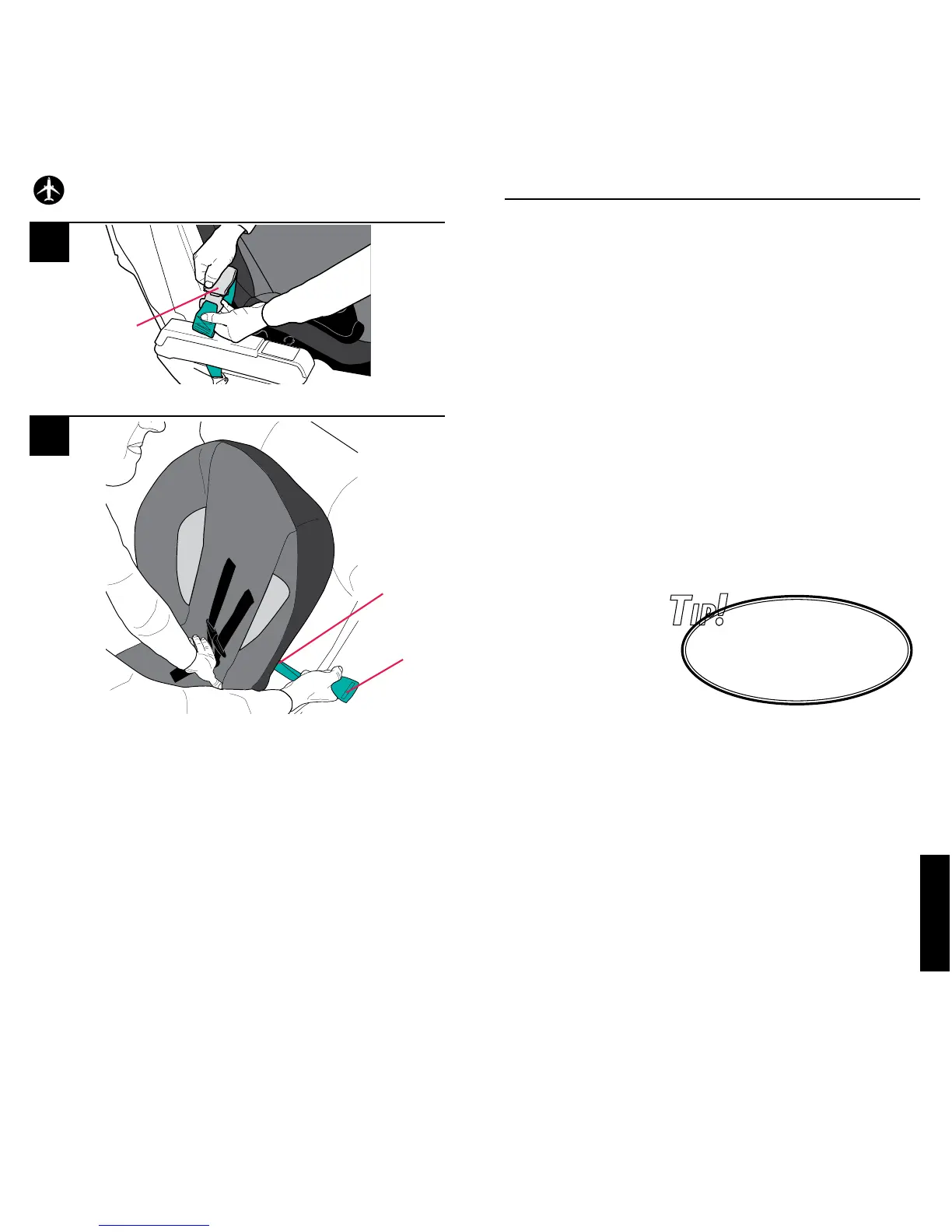 Note: Because of the fixed length of aircraft seat belts,