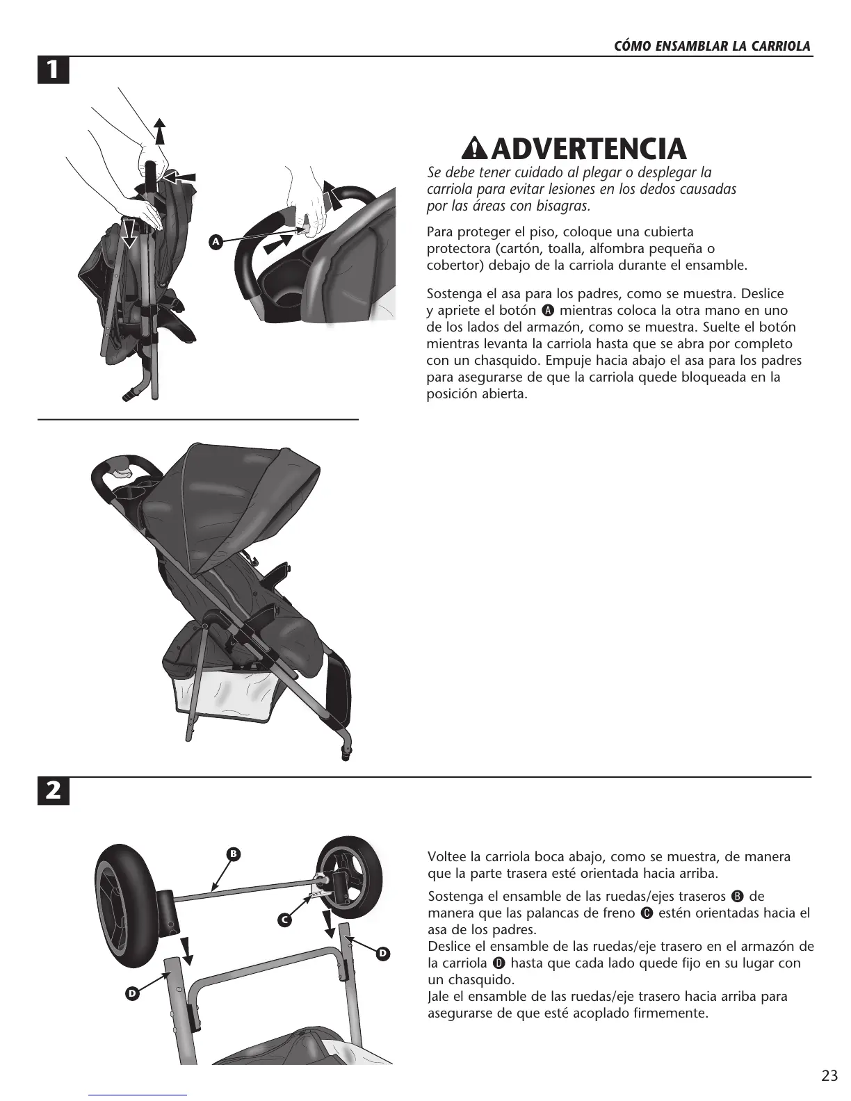 con un chasquido. Empuje hacia abajo el asa para los padres