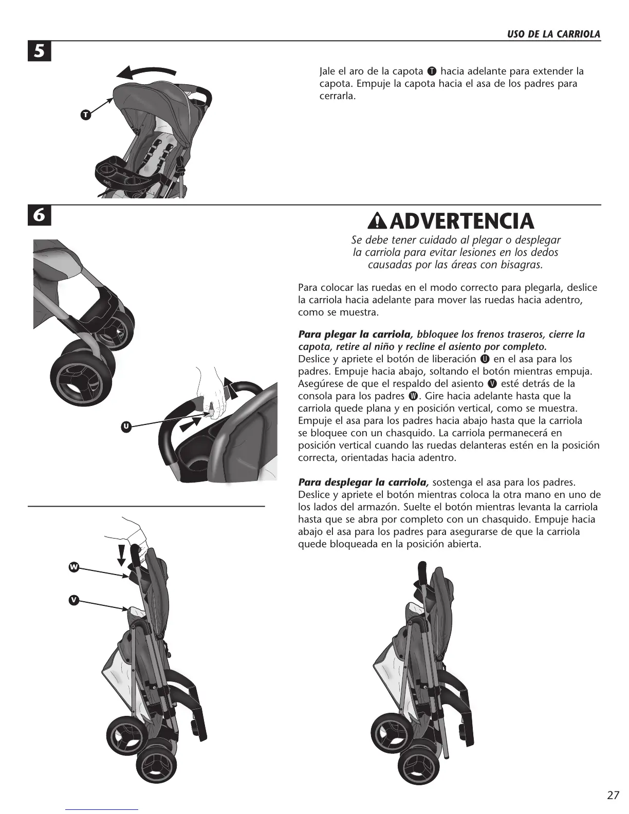 Para plegar la carriola, bbloquee los frenos traseros, cierre la