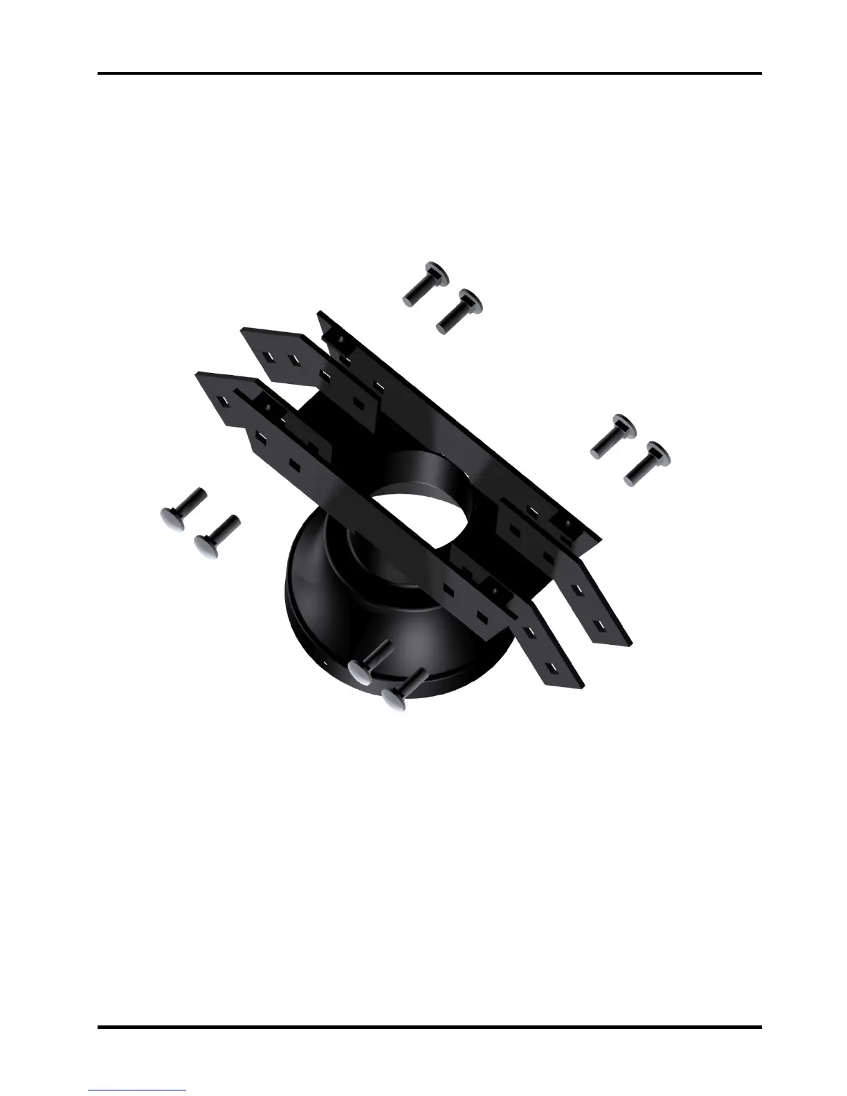 1. Assemble 4 gusset plates to the base as illustrated. Use 5/16” carriage bolts