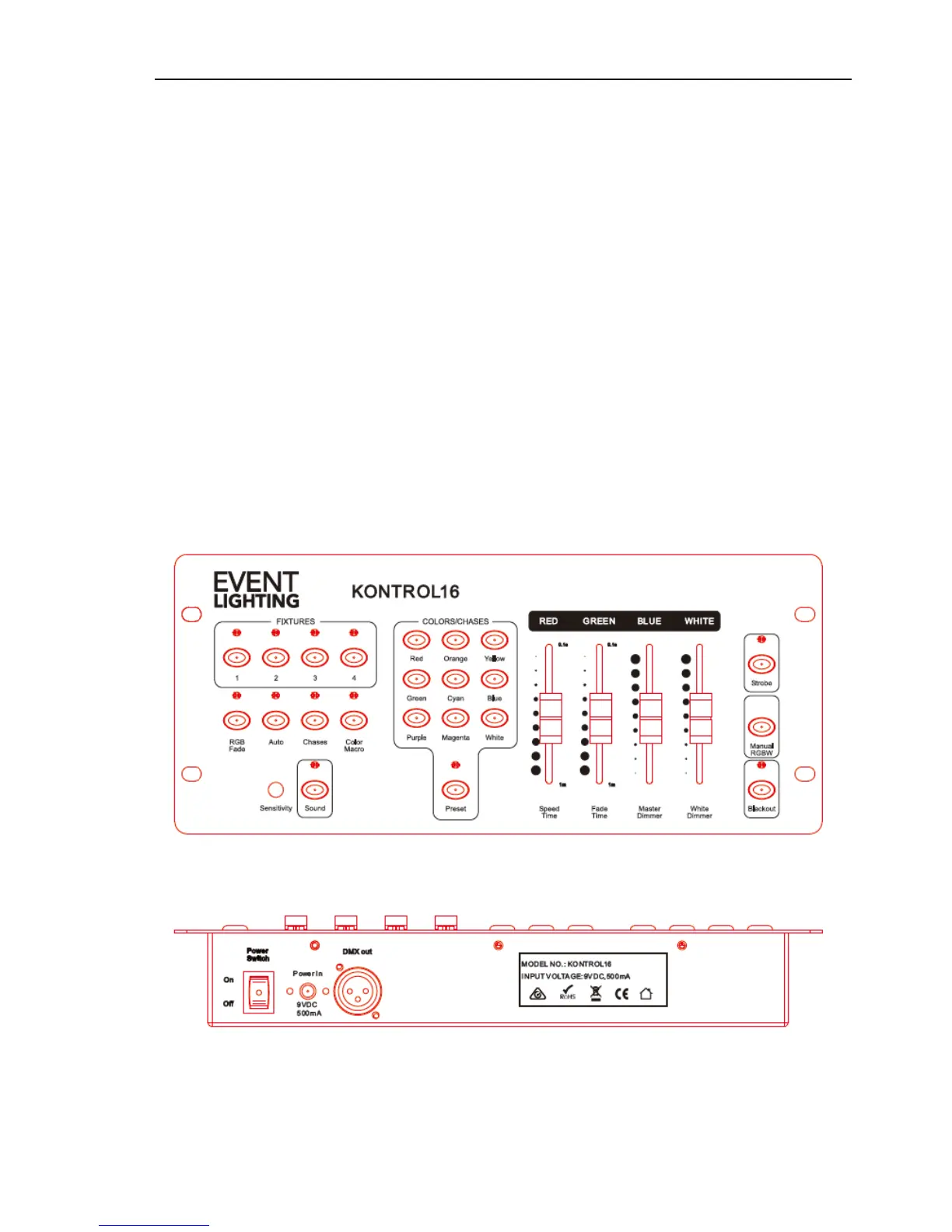 The KONTROL16 is a compact DMX controller designed for an independent control of up to four fixtures with a RGBW