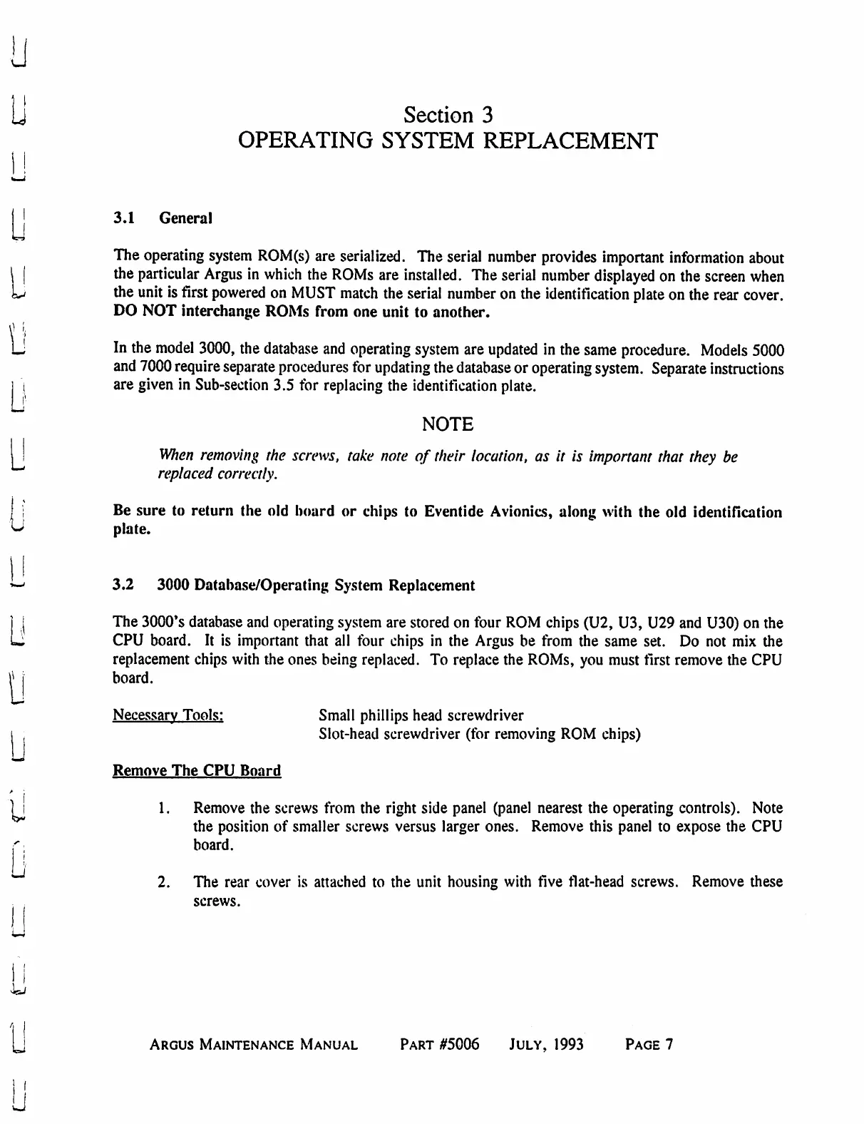 Eventide ARGUS 3000 - General; 3000 Database;Operating System Replacement