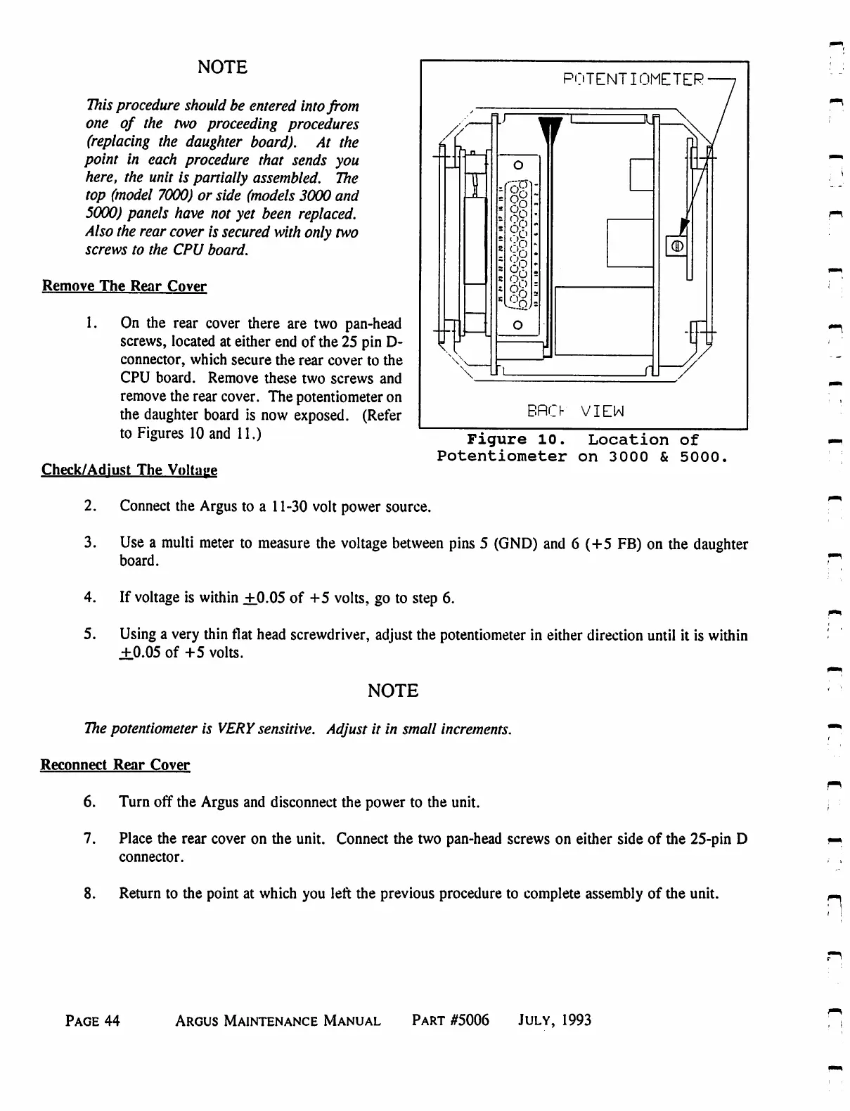 Eventide ARGUS 3000 - Location of Potentiometer on 3000 and 5000