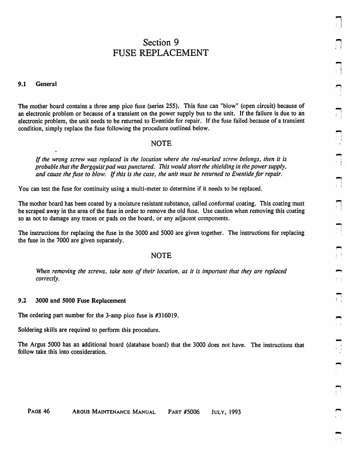 Eventide ARGUS 3000 - Fuse Replacement; General; 3000 And 5000 Fuse Replacement