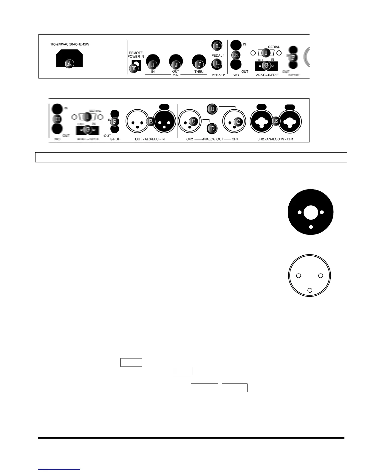 A) AC Port Connect an IEC standard 3-prong AC power cord here. The center post is chassis ground.
