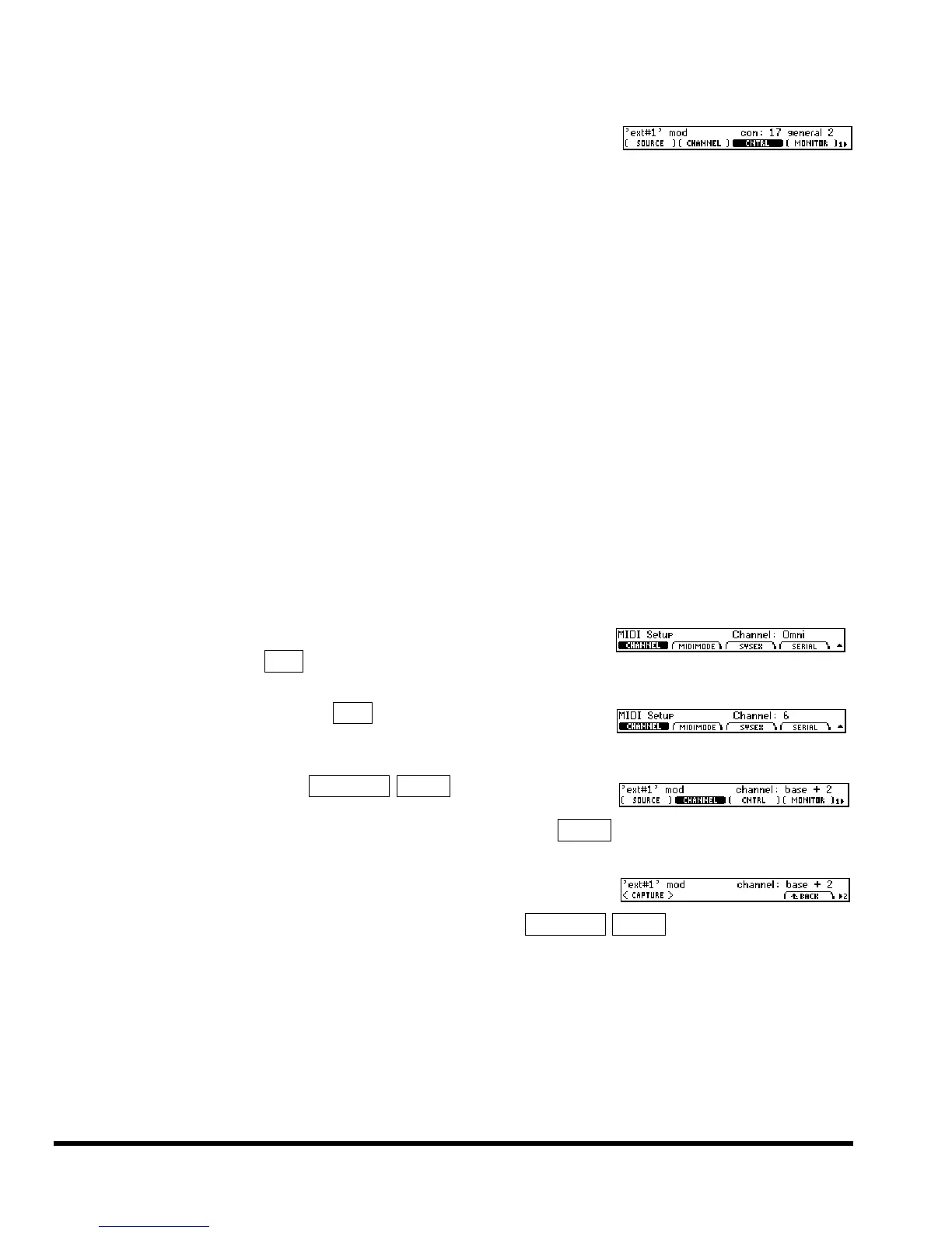 first MIDI message sent to the Eclipse. Press SETUP page 3 EXTERNAL EXT#1 page 2 <CAPTURE>, and