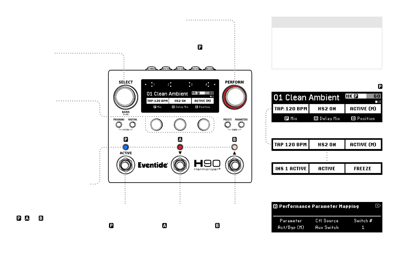 as tap tempo, Active/Bypass, momentary Active,
