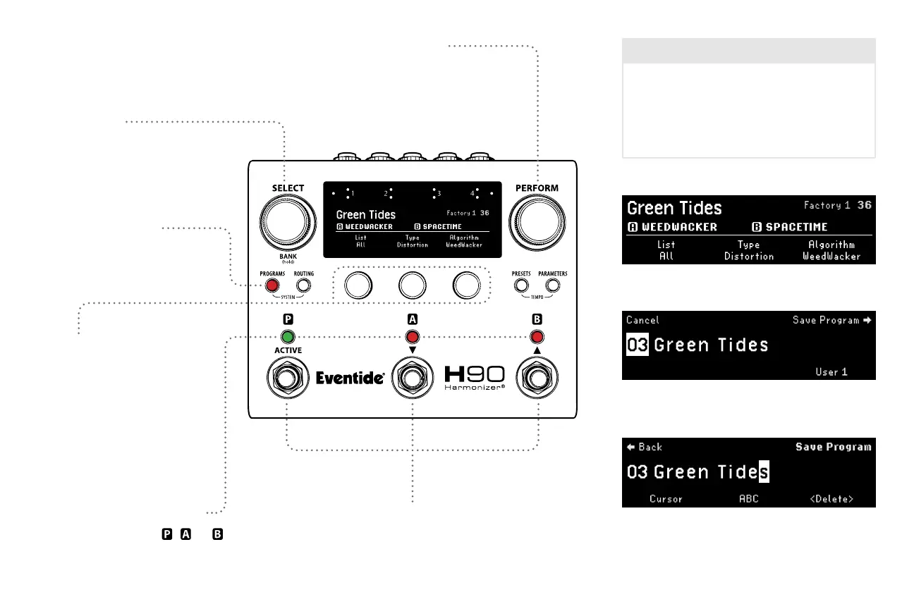 Press any Footswitch to exit Programs Mode.