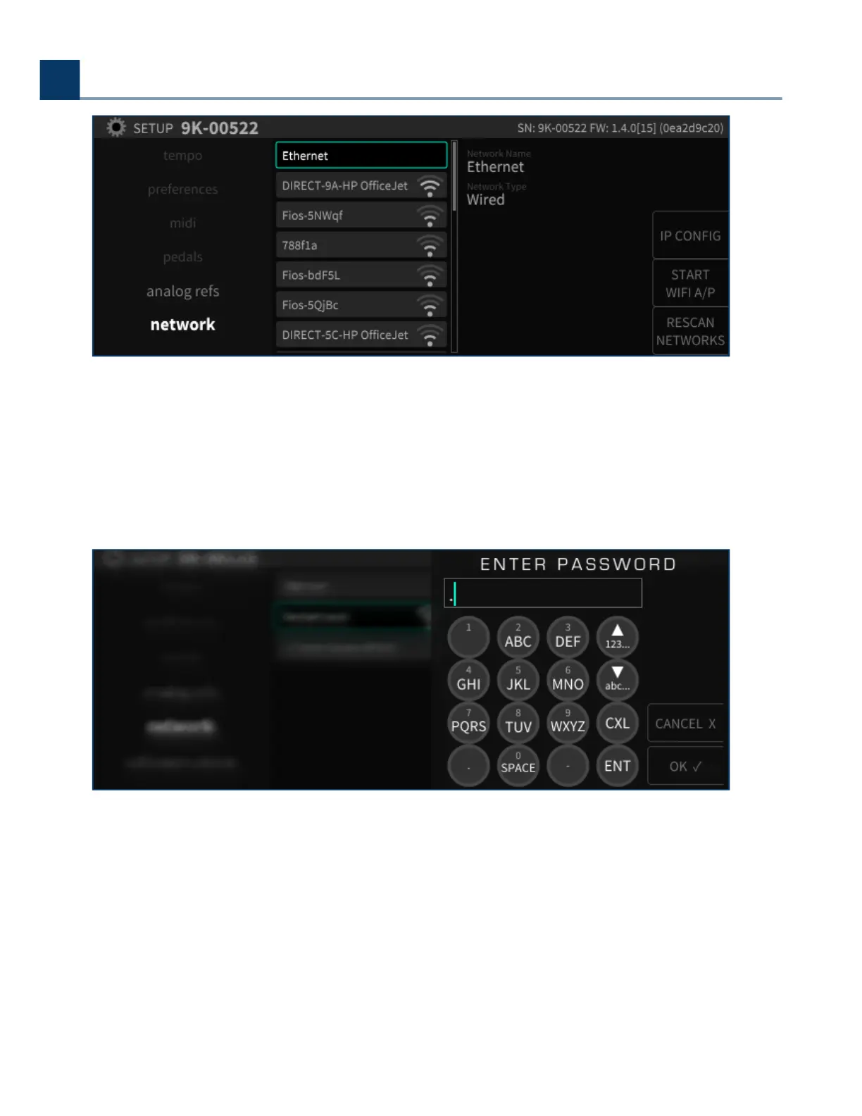 front panel numbers pad to enter the password, then press the OK sot key.