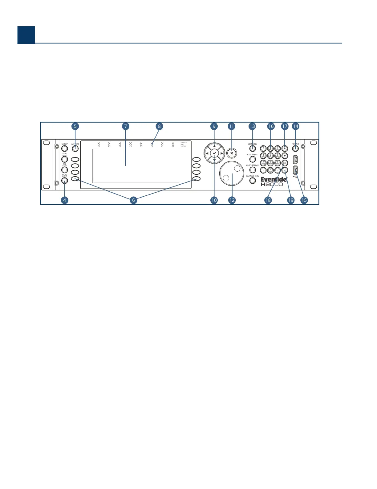 the H9000’s front panel user interface. The sot keys correspond to dierent functions and are