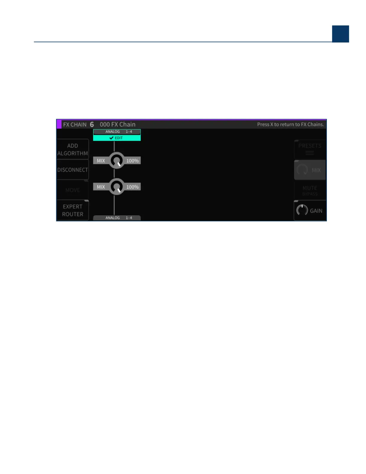 relative level of each algorithm within the FX chain. Navigate to the algorithm whose mix you wish to