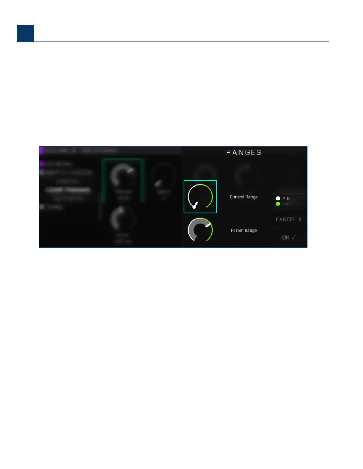 Use the cursor keys to navigate between the Control Range and Parameter range controls.