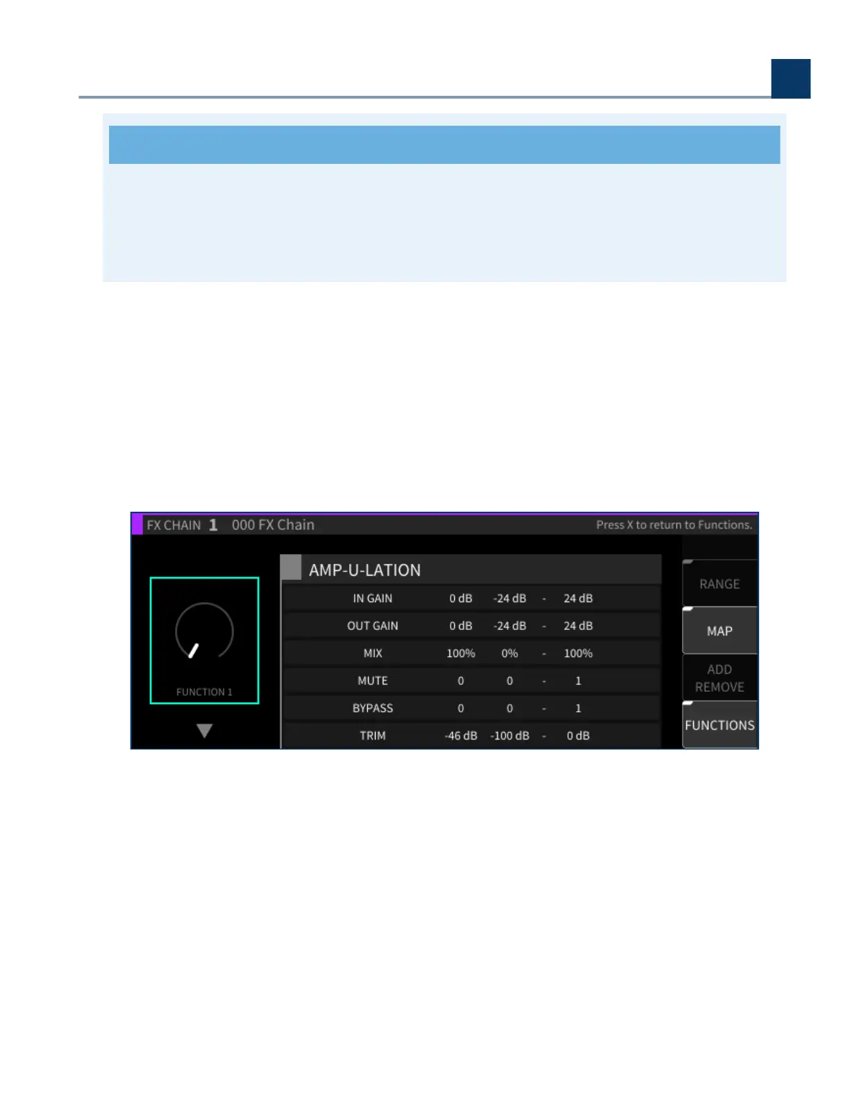 knob you had selected, and that Function’s number (e.g. F1) now appears on the let side of that