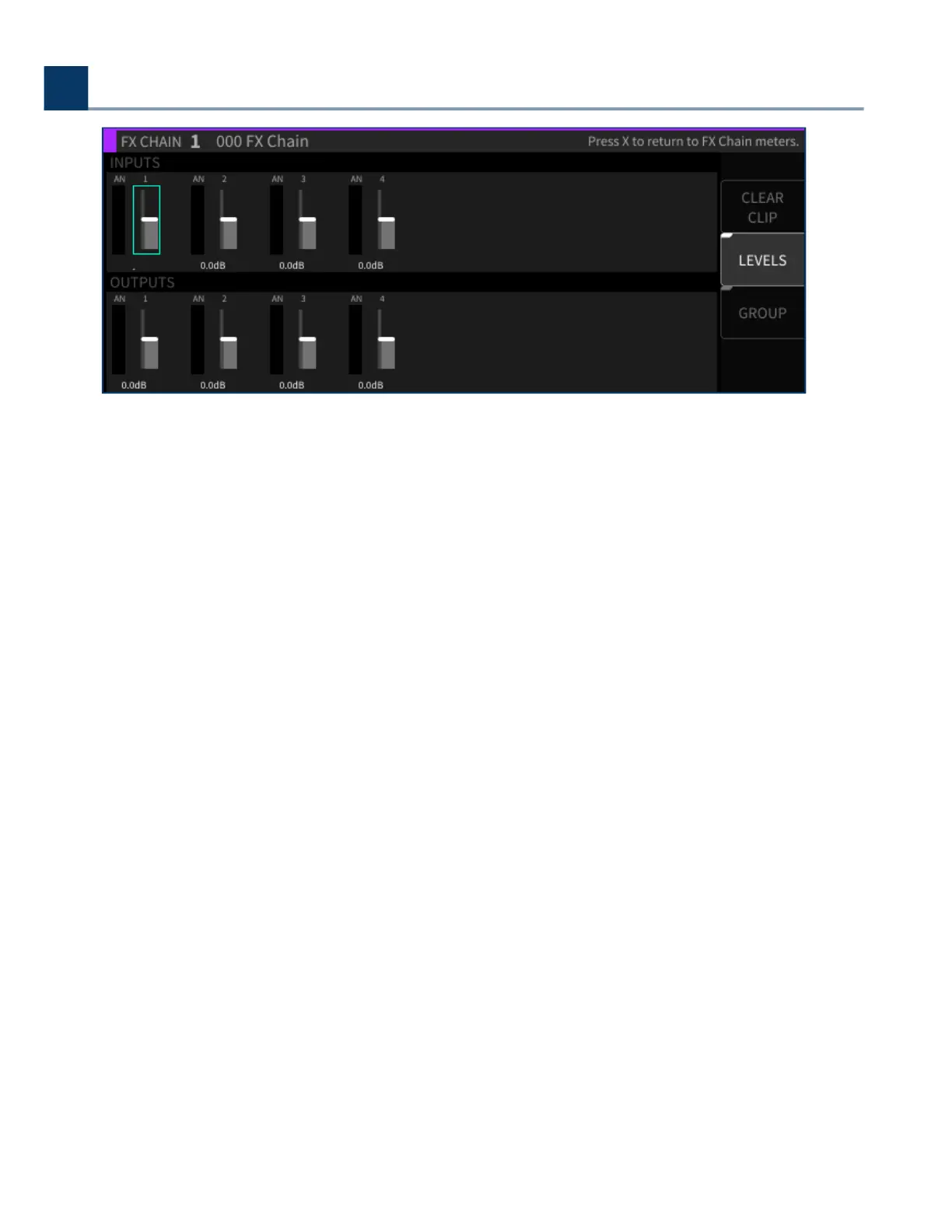 Use the cursor buttons to navigate to the input or output slider you wish to adjust, then use the