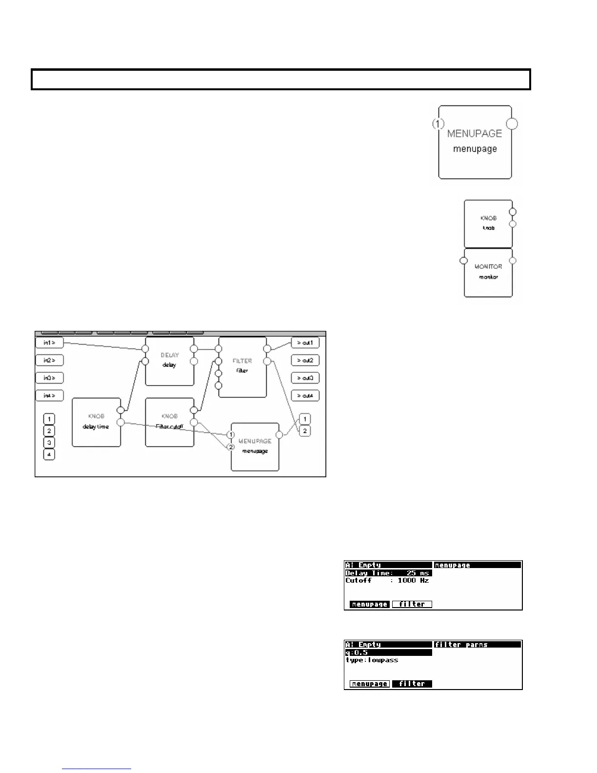 For example, we could utilize two knob modules and a menupage module in the program we’ve been